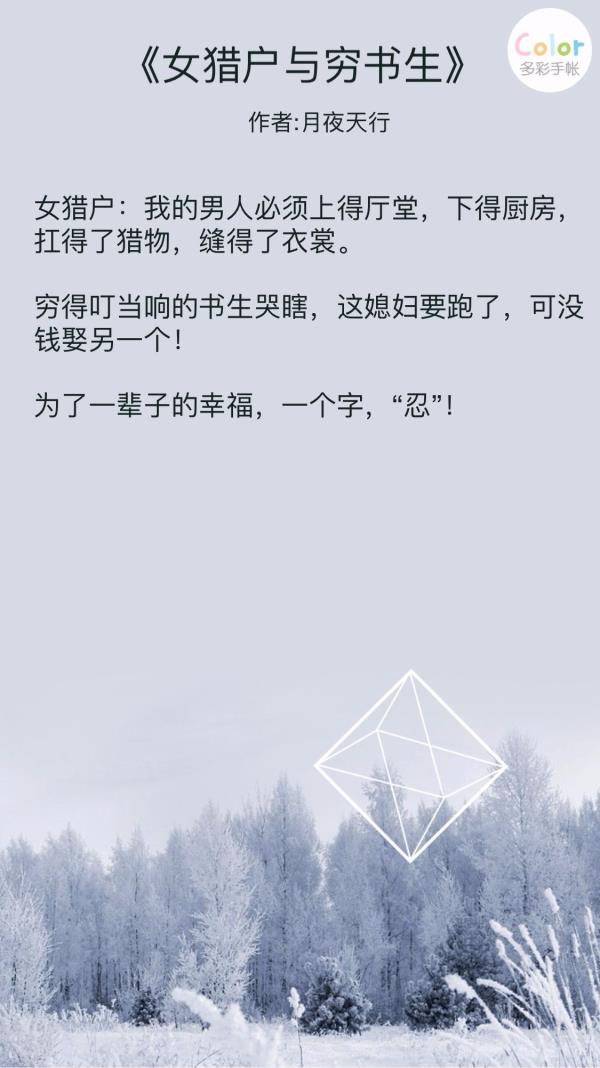 4、《女猎户与穷书生》作者:月夜天行