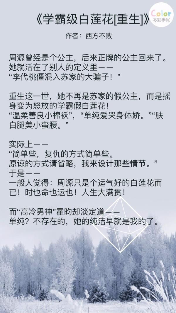 3、《学霸级白莲花[重生]》西方不败