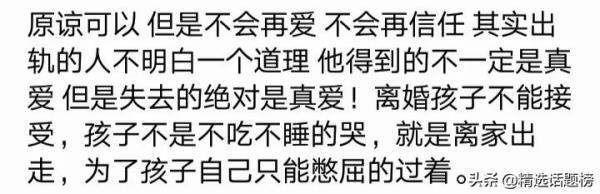 原谅可以,但是不会再爱,不会再信任,其实出轨的人不明白一个道理,他得到的不一定是真爱,但是失去的绝对是真爱。