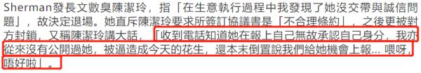 看到这真是满脸问号,这是怎样的奇葩一家人啊,之后钟舒漫又说我从来没有公开过陈洁玲的身份,是她自己莫名奇妙站出来承认的啊,现在又诬陷我们曝光她,好冤枉。