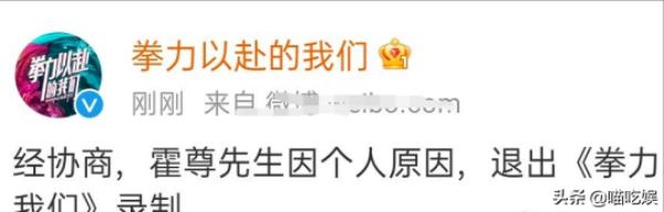 在进行的《披荆斩棘的哥哥》中,也删除了有关霍尊的镜头,并且宣布霍尊退出后续录制,而或霍尊的另外一档综艺节目《全力以赴的我们》也宣布霍尊退赛。该节目是让霍尊打拳击,如果效果好的话,霍尊真的可以翻红,但没想到如今去退出了,而且和霍尊搭档的肖顺饶可能也会受到牵连。