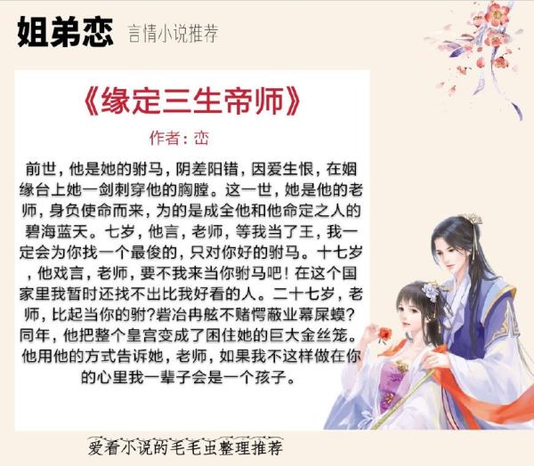 小短评:两人前世是仙君,男主与女主相爱成亲,女主因误会男主与女配有私情,冲动之下一剑杀了男主,后得知真相。女主下凡成为男主自小起的老师,任务是帮助男主找到命定之爱,以保他下一世与自己的幸福相守。但意料之外的是还真没怎么虐女,出现的女配如果不是有男主的辜负相信也一直会是挺可人的女孩。而且作为对比更是坚定了男主对自己老师的挚爱不动摇以及非卿莫属的执着。男主从情窦初开起就独独对女主心之所系、恋慕至极;毫无压力的成长为一枚天然黑忠犬,对于与女主走得近的侍卫更是大吃飞醋。另外,不用担心两人的年龄问题,女主因是仙子,一直保持 20 岁的样貌,男主则在 21 岁与女主真正相恋, 27 岁时与女主身心合一。曾为女主一度的离开落寞伤心,而登基称帝后越发宠女主宠得没边了。强烈推荐!