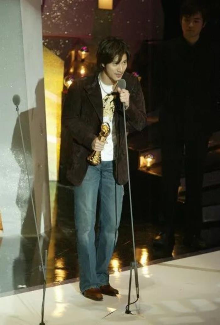 可再看一身造型,大印花T恤随便配个西服就已是金曲奖演出服,更别说胡子拉茬的人家就上台了。可又如何?还不是边沉浸在歌声里边感叹这人长得真好看呀,就算是这样随意,却还是有工整的美貌,甚至还让人品到了不同以往的Man味。