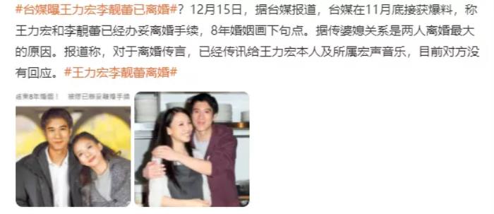 先是一大早台媒爆料两人已经办妥了离婚手续,还煞有介事表示离婚原因是“婆媳问题”。