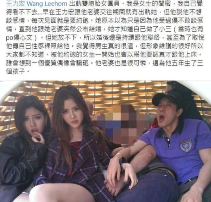 针对他出轨一事,他的经纪人否认,同时By2工作室也发出声明,针对网络上的图片,工作室澄清了,该图片拍摄于2013年王力宏演唱会上的庆功宴上,而并非近几年。