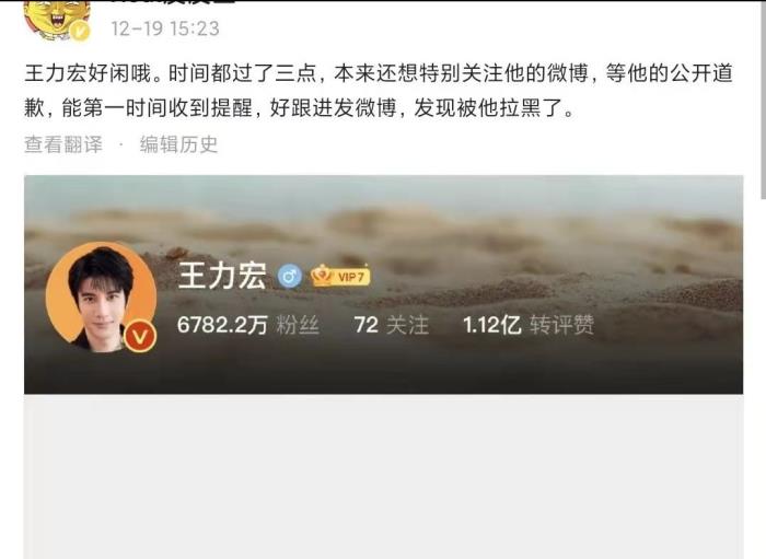 王力宏出轨风波还在持续发酵。在李靓蕾要求王家父子针对诽谤道歉未果后,网友发现王力宏在隔离旅馆一点儿也没闲着,前后拉黑了不少评论他的网友。