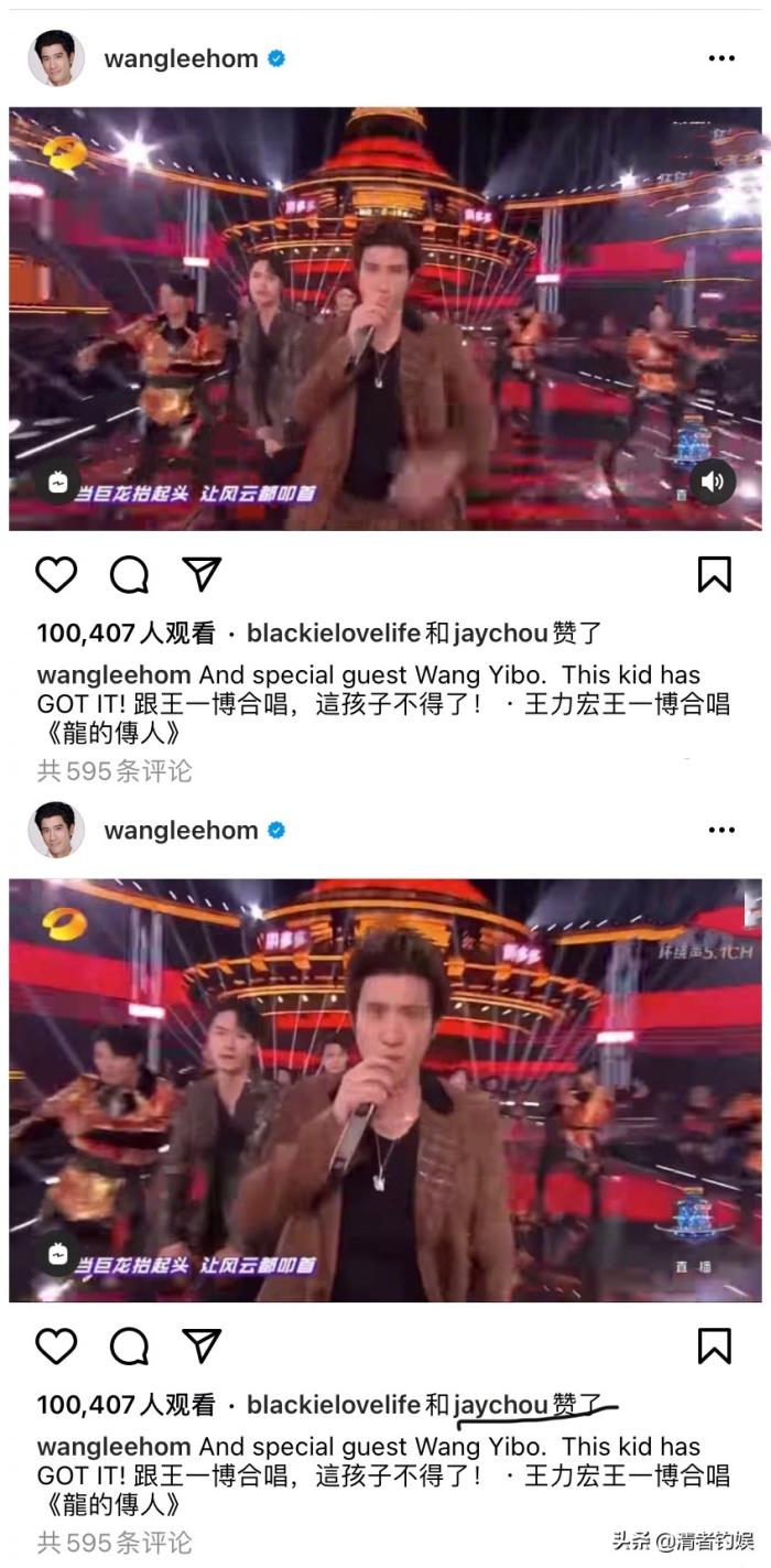 对于王一博的表现,前辈王力宏很认可,他在自己的社交账号上晒出了与王一博的合作舞台视频,并配文夸赞对方:“跟王一博合唱,这孩子不得了。”随后周杰伦和陈建州也点赞了王力宏的最新动态,表达了自己对于王力宏舞台和王一博的认可。