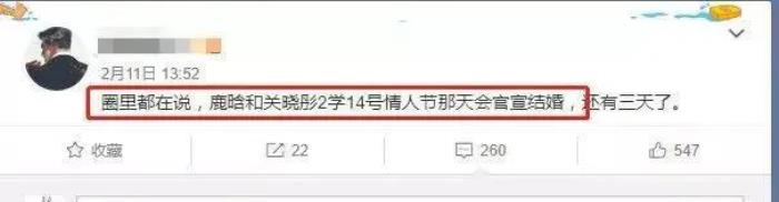 鹿晗关晓彤结婚消息也不是第一次传了。