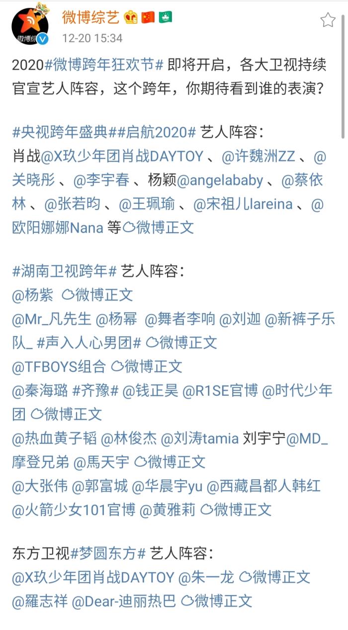 在高以翔事件出炉之前,其实一直有一份名单,是关于浙江卫视湖南卫视跨年阵容的,而央视今天宣布了跨年演唱会名单中,不少是原来浙江卫视的人员。