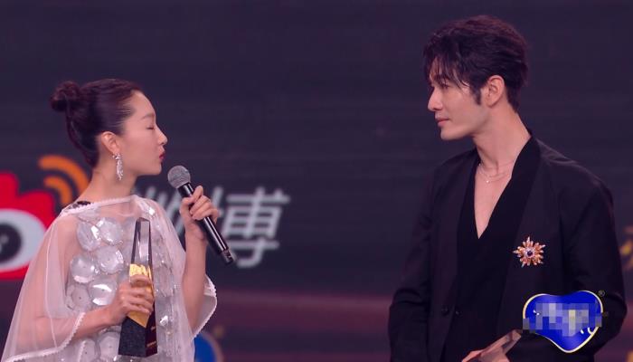 之后黄晓明和周冬雨一起领奖,黄晓明瘦得脸上都没有肉了,连周冬雨都说他瘦了很多。