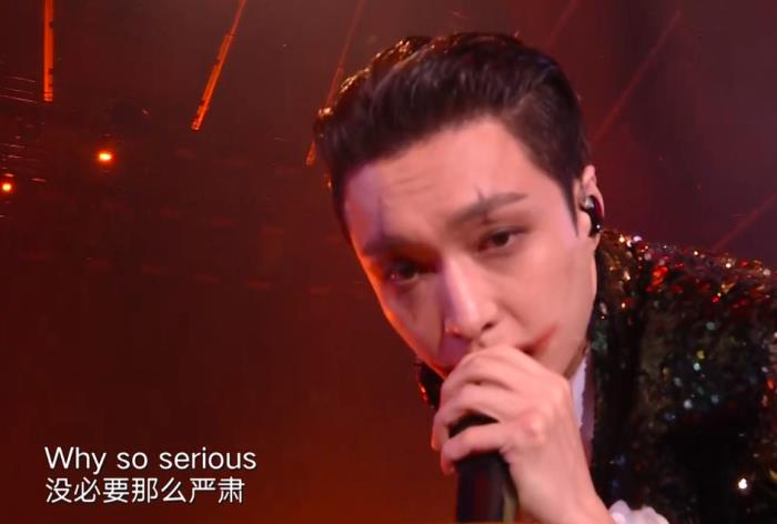 张艺兴在场上唱了一首自己的歌曲,脸上化着小丑妆容,不知道是不是状态不好,看起来比较疲惫,黑眼圈和眼袋很重。