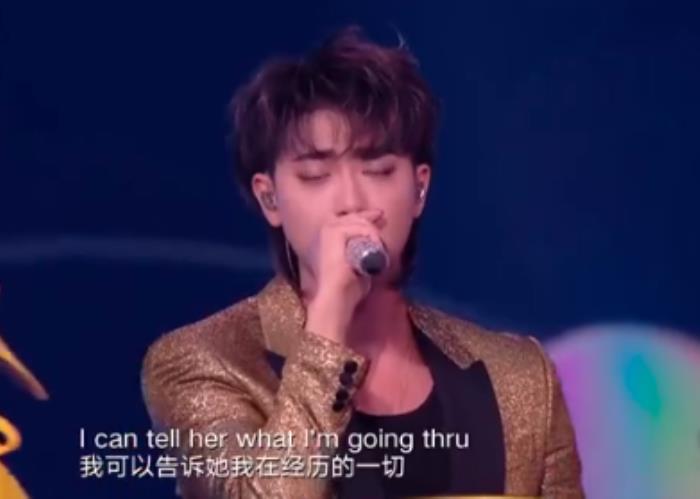 歌手华晨宇在邓紫棋后面登场,看得出来华晨宇在唱歌的时候忘我又投入。