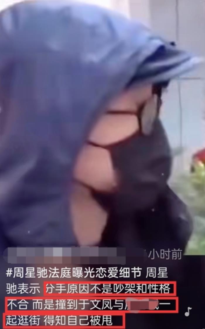 周星驰在法庭上讲述了他与于文凤之间的恋爱细节,他表示,分手原因不是吵架和性格不合,而是撞到于文凤和另一男性一起逛街,该男性疑是香港百亿富三代廖尧城,才得知自己被甩,疑似被绿,女友于文凤出轨而导致分手。