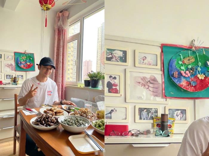 去年七月,黄晓明在社交平台晒出了一组回老家的照片,墙上两人的婚纱照十分抢眼。
