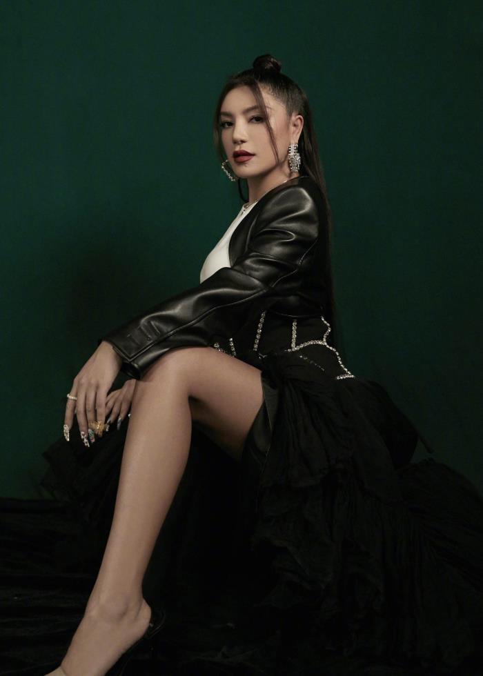 黑白配的造型则展现出一种霸气和性感,白色打底T恤提亮了整体造型。黑色的皮衣外套,酷劲十足,方形的硬朗风的耳环,更带来一种抢眼的时尚感,丸子头十分简约大气。
