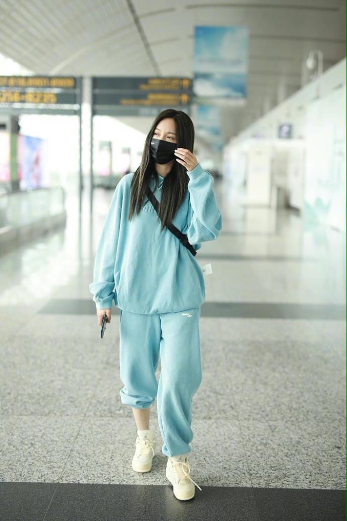 沈梦辰身穿浅蓝色的卫衣,戴着棒球帽和黑色的口罩,打扮休闲随性,虽然整个脸被遮住了一大半,但不难从眼睛就能看出沈梦辰是带着笑意了。