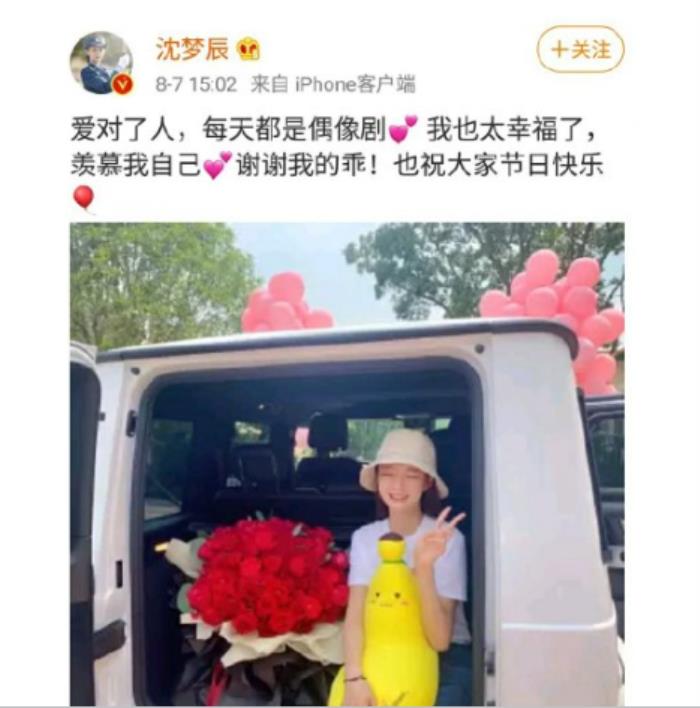 沈梦辰惊喜万分在微博晒出合照,动情感叹自己每天都过得跟偶像剧一样。