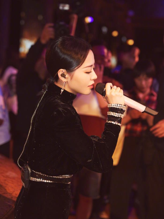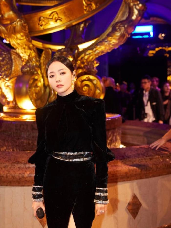 35岁张靓颖颜值逆生长,丝绒长裙女神气质十足,保暖又不失时尚