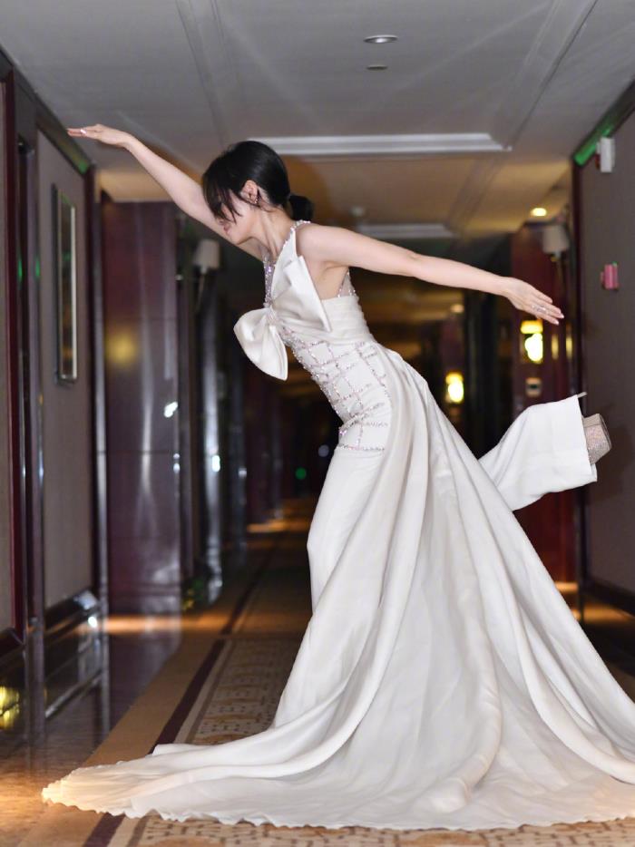 33岁的张靓颖对自己的定位非常明确走的就是气质范儿,什么青春少女感基本就没有出现过,参加活动也是穿得非常女神,这身丝绸连体裤非常显身材,上身是挂脖式的紧身设计,背部被白色蕾丝遮住若隐若现,腰间拖着一块白色的裙摆,有些披风的感觉,霸气十足,很符合张靓颖的气场,面对镜头非常搞怪,但是女神就是女神啊,身材太好了。