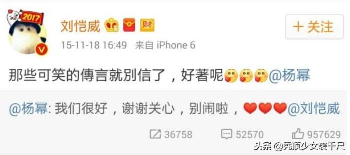 而且,两人的微博互动也已经终止。2015年7月杨幂最后一次转发刘恺威作品。