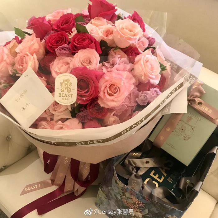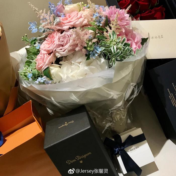 这是粉丝送范冰冰的生日礼物,有鲜花也有名牌礼物。