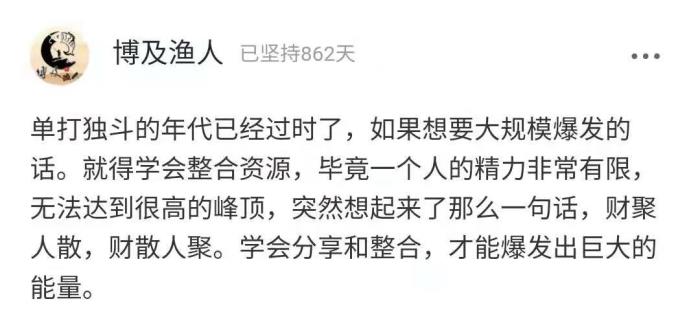 飞白:看过一句话:如果你自己没有什么能力,就不要想着去整合资源,因为别人为什么不可以自己干呢?