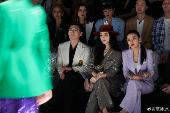 范冰冰也翘着二郎腿坐在台下看秀,一副特别专业的样子,她的旁边也坐着严屹宽,可是范冰冰的有些照片却特意将杜若溪“排斥”在外,这也遭到了有些网友的吐槽。