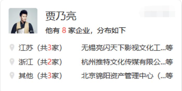 据公开资料显示,贾乃亮共在5家企业担任法人代表,在7家企业担任股东,其中有5家都是贾乃亮控股。
