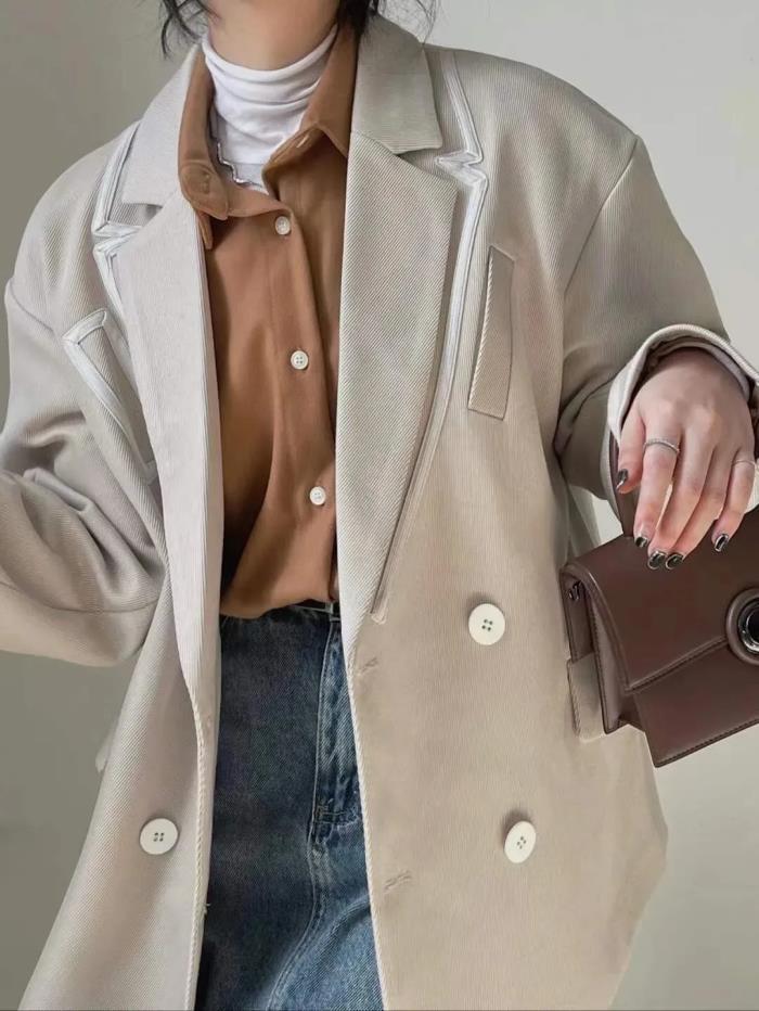带垫肩的衣服其实蛮适合大骨架圆身材的,但大垫肩的不太行,会放大肩膀的的存在感