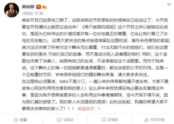 黄晓明的小作文里却用“我的家人”来称呼baby,相比起来虽然亲密不少,但确实没有当年那种甜蜜的感觉了。