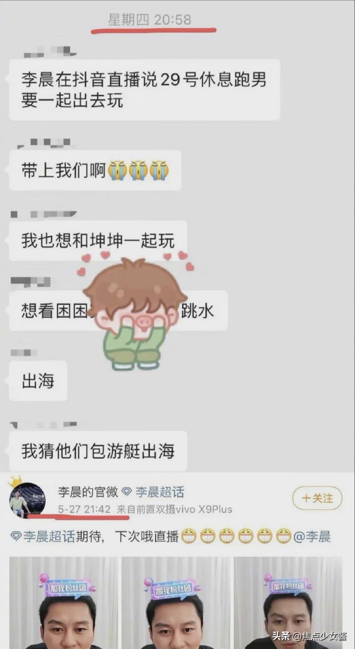 还有,李晨早就和粉丝说过他们会集体出去玩。5月28号录制跑男,29号集体出去玩很正常啊。有网友求证李晨官微,被证实截图是真。
