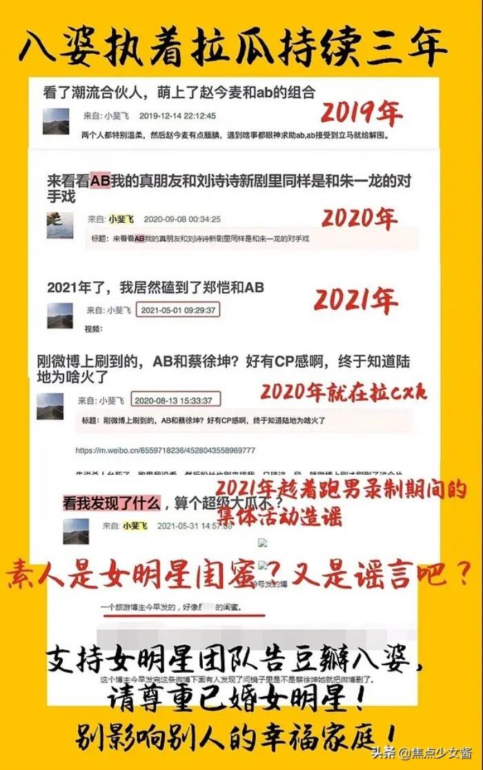 马上关于两人的造谣瓜就一层激起千层浪,蔡徐坤被辱骂了一个下午。有网友去扒造谣的人发现是Angelababy的“脂粉”,三年来持续不断在为baby炒作各种组cp等操作。