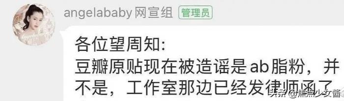 另外,baby的网宣组也澄清说发帖的并不是baby脂粉,目前工作室已经发律师函了。这个,谁知道是真是假呢?