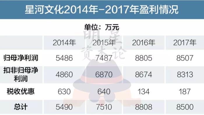 3月份北京文化发布审核报告显示,截至2017年12月31日,星河文化2014至2017年累计实现净利润3.03亿,业绩承诺已经实现。
