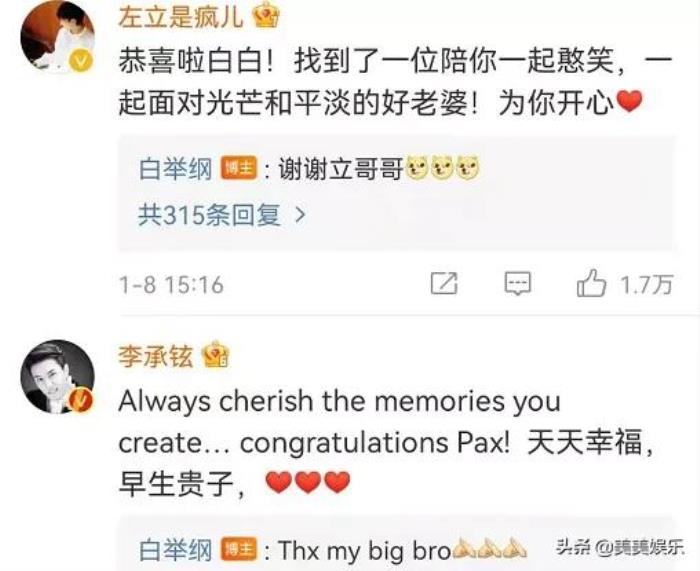 大概是觉得这样的曝光有些随意,想要自己正式一点,所以才涂抹掉的吧,而且白举纲还感谢了另一半,用的词是爱人。