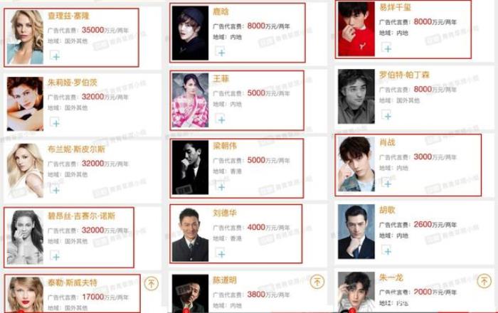而最低的代言费中,欧阳娜娜、宁静、雷佳音、刘亦菲、李现等明星则是一千万的代言费用。李现是当红的电视剧演员,人气高,号召力也可以,代言费用有点低。