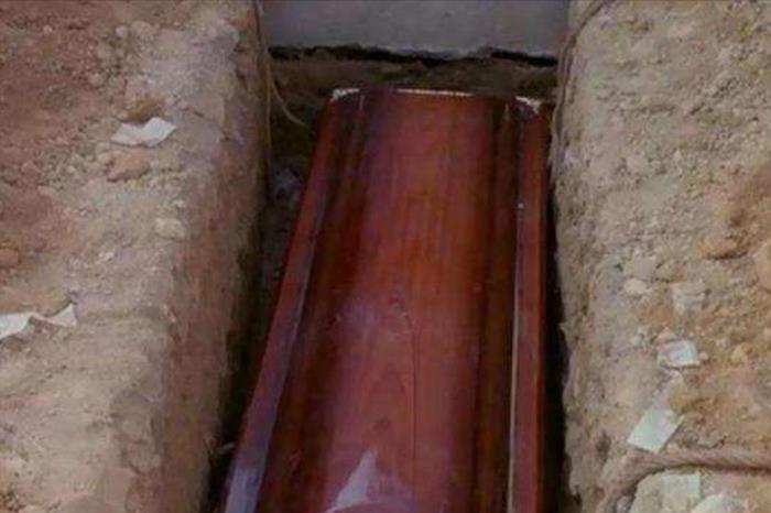 图|男人见到黄土中的棺材