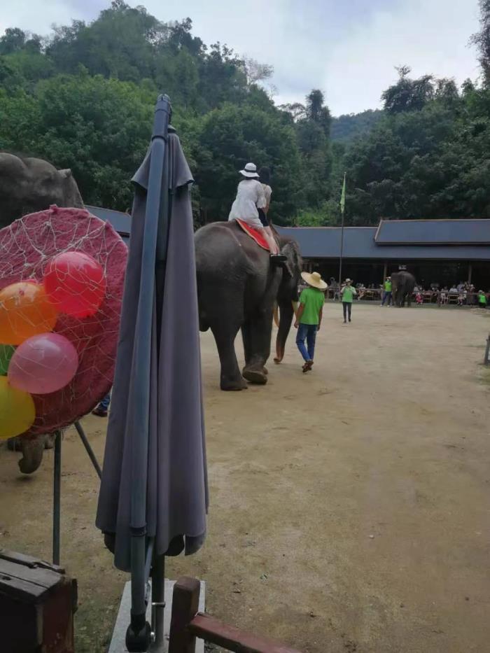 由于用餐慢,出来的晚了,掉队后自己找大象场没找到,方向走反了。找回头路到了表演场,节目已经错过了一半。这里的大象都比较瘦,个头不小。中间可以骑乘,但是收费,多少钱也没问,因为没有乘坐的打算。拍照也收费,大概是30块钱。整个过程,让我一边看一边回忆几年前在泰国清迈的大象场。