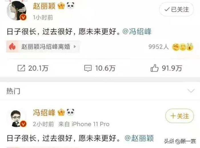 前不久,冯绍峰和赵丽颖离婚时,两人也都平静地发文告别:“日子很长,过去很好,愿未来更好。”
