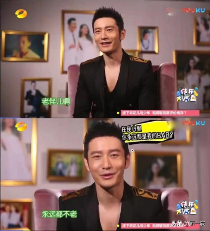 黄晓明发挥他山东人的耿直特性,直接表白杨颖:“老伴儿啊,在我心中,你永远都是我的baby ,永远都不老。”