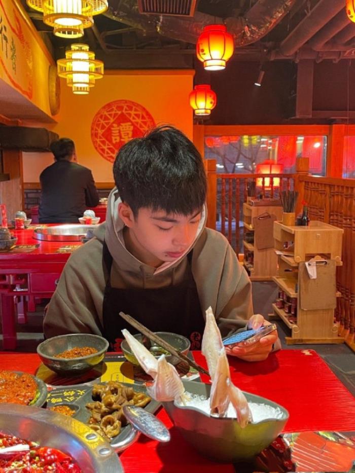 王晓蓉上一次po出威廉的照片都已经是一月份的事儿了,当时母子俩外出吃火锅,威廉全程低头玩手机,并没有露出正脸,不过“低头杀”还很有范儿啦。真是没想到,曾经在《爸爸回来了》里的暖心大哥哥威廉,一转眼就已经长成15岁的帅气大小伙了。
