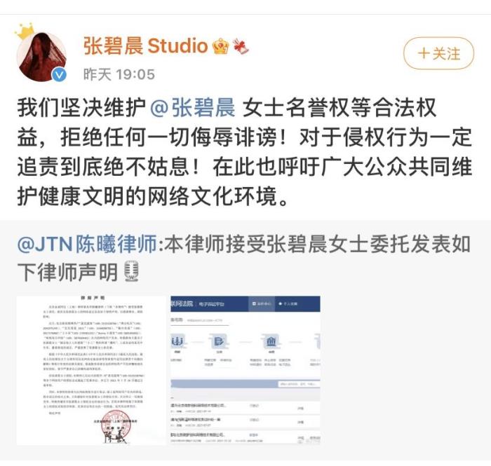 紧接着,华晨宇孩子的妈妈张碧晨也发了维权声明,拒绝一切侮辱诽谤,剑指爆料的女网友“发发爱我2021”。