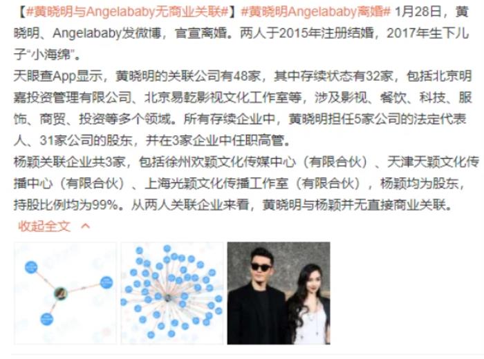 据资料显示,黄晓明与杨颖已经没有商业关联,两人看来早已各自财务独立,估计不存在争产问题。