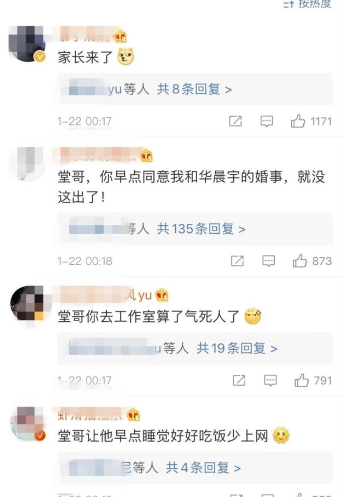 到了1月22日凌晨,华晨宇的堂哥终于“被迫营业”,用“庚子年末,妖风四起,群魔乱舞”12个字来回应华晨宇与张碧晨隐婚生子的传闻。