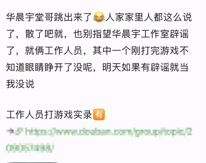 因为工作室不作为,粉丝将堂哥发文视为华晨宇的官方回应,同时透露,最开始造谣华晨宇跟张碧晨隐婚的人已经注销了账号,连夜逃跑。