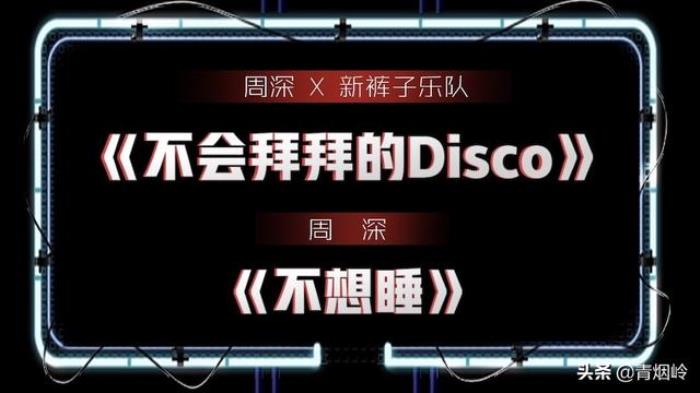 周深 携手@新裤子乐队_ 重绎新裤子珍藏十年的迪斯科舞曲《不会拜拜的Disco》。复古的音效模拟前奏让整个舞台瞬间回到了八十年代的记忆之中,复古与潮流兼具,像是欢快放纵的迪斯科舞曲,又像是浪漫朦胧的现代诗。周深清澈洁净的音色与彭磊摇滚叛逆的声线碰撞出了前所未有的奇异火花,反复的吟唱让那个时代的光芒沿着音乐照亮了每一位听众。自然而然地舞动与雀跃流露出了当初的热情和肆无忌惮,在这一刻歌手、乐手、鼓手们都回归为了一群热爱Disco的孩子。