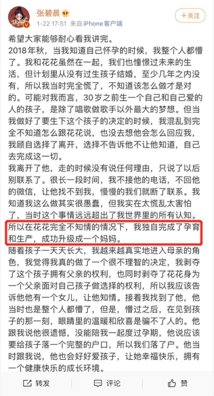 由于两人没有生孩子的计划,慌乱的张碧晨主动跟华晨宇断了联系,瞒着他独自生下女儿。