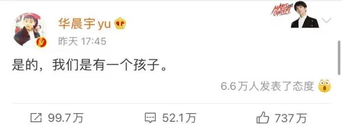 就在传言愈演愈烈、网友纷纷质疑真假时,华晨宇忽然发布声明,公开承认已有一个孩子。