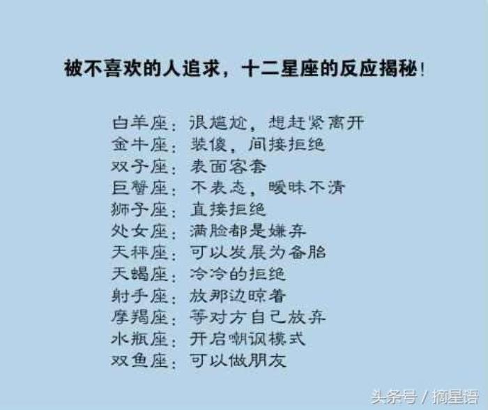 【被不喜欢的人追求,十二星座的反应揭秘!】