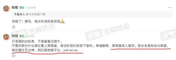 该博主发布了爆料帖子之后,还在底下评论区称预测该男明星会在三个月内官宣与该女网红的婚讯,还表示该男星的前任是一位圈内女星,同时还透露女网红前夫要起诉她婚内出轨。